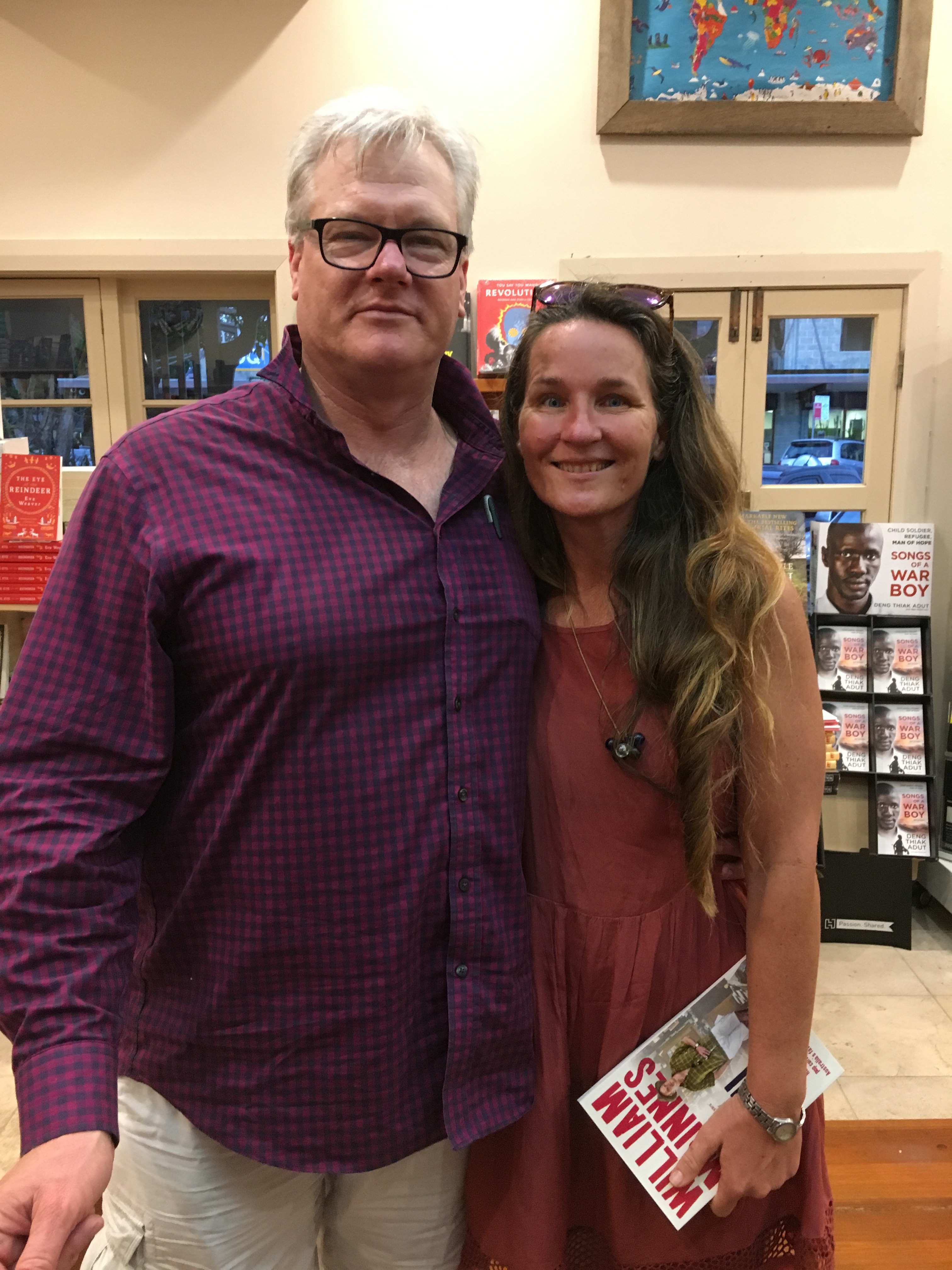 The first person I see as I approach the corner bookshop with it’s white timber verandah and Illawarra flame tree spreading out a flowery red carpet is no other an William McInnes himself. The author I’ve come to hear speak. He’s quite tall and somewhat older than I remember although still handsome and charming.  I recognise that familiar Queensland sarcasm and wit which makes Queenslanders so endearing. He seems like a fun bloke, perhaps a bit of a larrikin and we exchange a little chit chat and share a laugh or two before he is set upon by some eager fans who have also forgotten the time difference and are in a flap to spend as much time as possible in his company. I smile as I make my exit to mingle with some friendly looking locals.